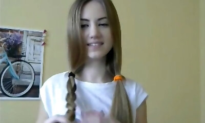 Hairy pussy camgirl horny masturbates playthings on webcam