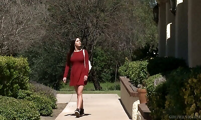 Bootylicious sizzling housewife seduces a neighbor to get her pussy eaten on steps