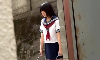 combinazione di piccoli adolescenti giapponesi in uniforme da scolaretta con tette piccole che vengono arati